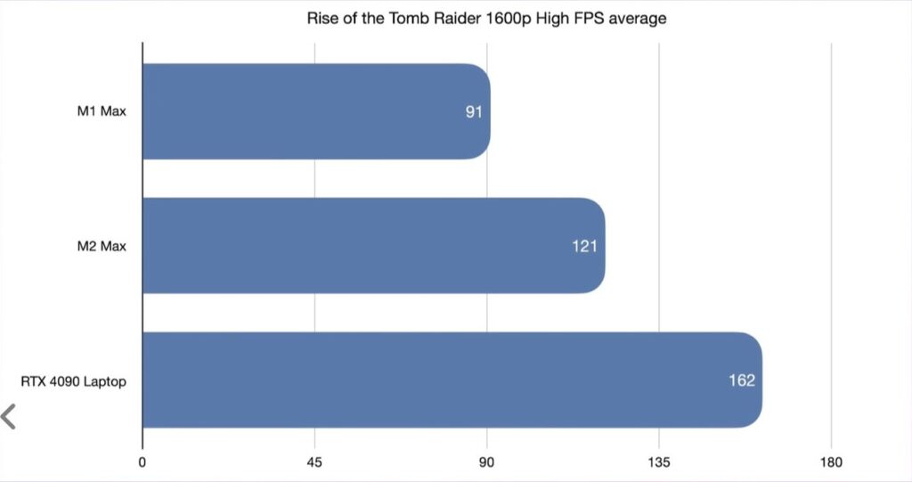 Adapun berbagai game yang kompatibel dengan kedua sistem, seperti yang kita semua tau, RTX 4090 dioptimalkan untuk kebutuhan gaming dan dengan mudah mengalahkan GPU on-chip 32-core M2 Max.
