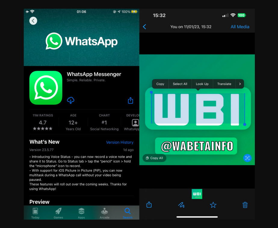 Menurut laporan dari WABetaInfo, fitur Text Detection di WhatsApp sudah tersedia pada pembaruan terbaru aplikasi WhatsApp untuk perangkat iOS versi 23.5.77 yang dapat diunduh di App Store. Jadi, pastikan kamu sudah mengunduh pembaruan terbaru untuk bisa menggunakan fitur ini.