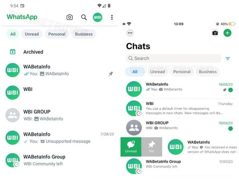 Tampilan baru WhatsApp untuk Android (kiri) dan iOS Foto: WABetaInfo