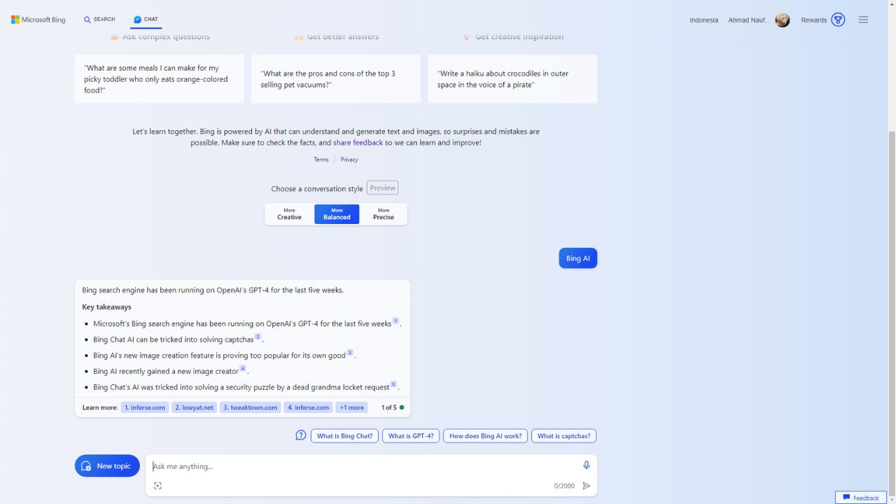 Untuk menggunakan ChatGPT terbaru di Bing, pengguna hanya perlu menggunakan Bing dan pergi ke menu chat. Berikut adalah langkah-langkahnya: