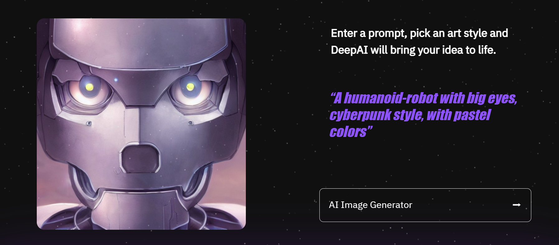 1. Generate Gambar dari Teks: Pengguna dapat mendeskripsikan gambar yang diinginkan, memilih tema, dan DeepAI akan menciptakan gambar khusus berdasarkan deskripsi tersebut.