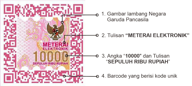 - Memiliki 22 digit kode unik berupa barcode yang dibuat oleh Sistem Meterai Elektronik khusus.