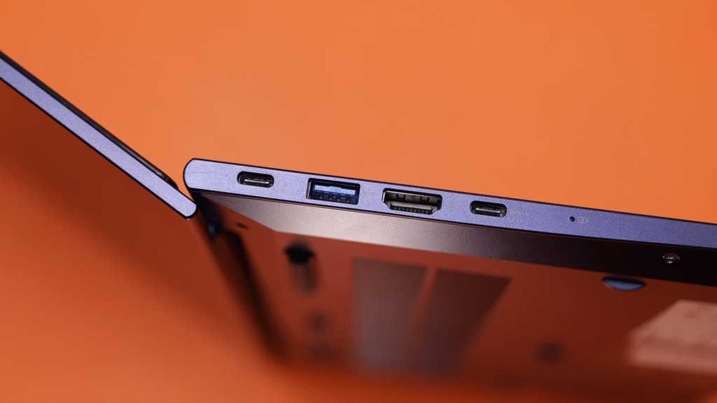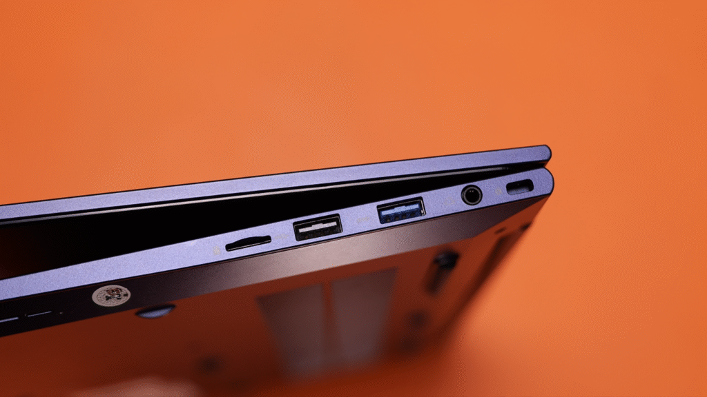 Port-port yang disediakan juga cukup lengkap: ada USB-A, USB-C, HDMI, bahkan masih ada jack audio. Jadi nggak perlu ribet bawa-bawa dongle tambahan buat kerja.